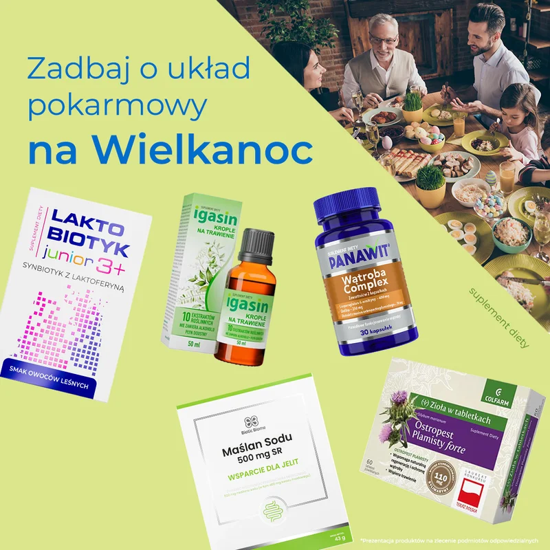 - leki na trawienie, zgagę, wzdęcia i inne problemy żołądkowe,