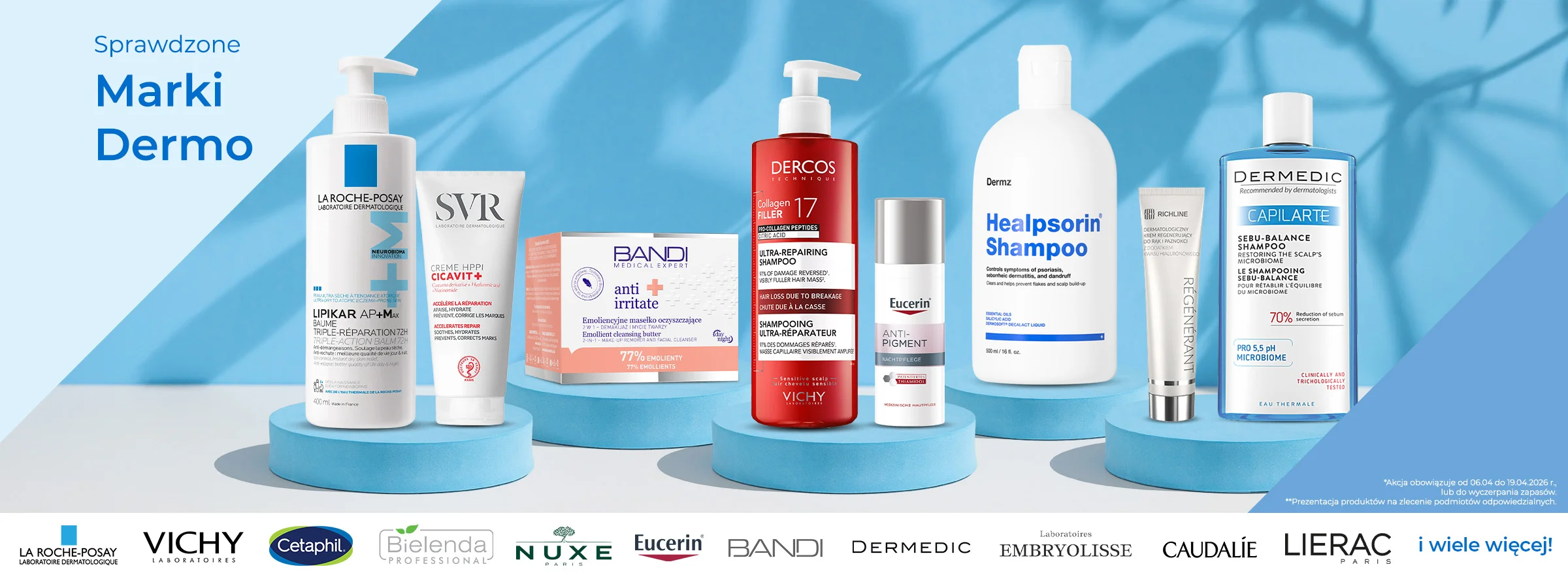 W tej sekcji dostępne są dermokosmetyki oraz specjalistyczne produkty do pielęgnacji skóry i włosów: