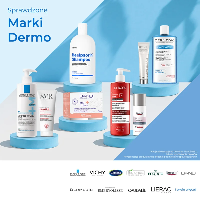 W ofercie znajdują się produkty renomowanych marek aptecznych, takich jak La Roche-Posay, Vichy, Bioderma, Avene, Iwostin i inne.