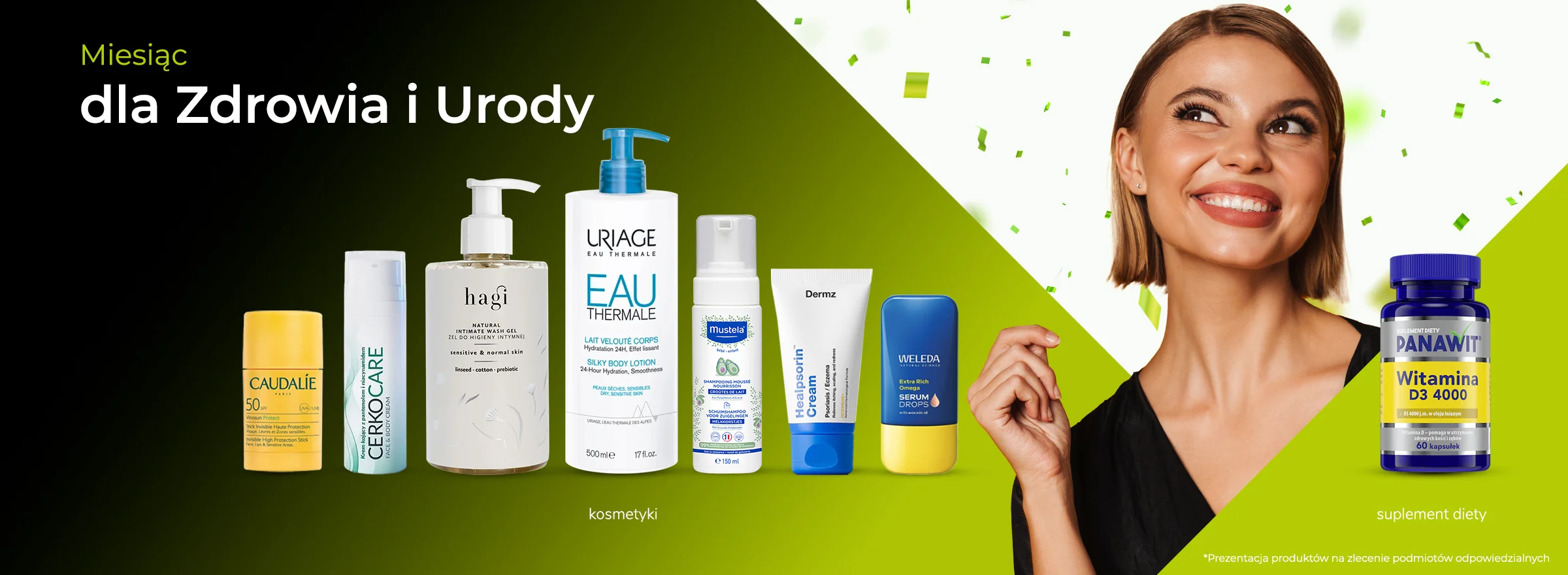 W tej sekcji dostępne są dermokosmetyki oraz specjalistyczne produkty do pielęgnacji skóry i włosów: