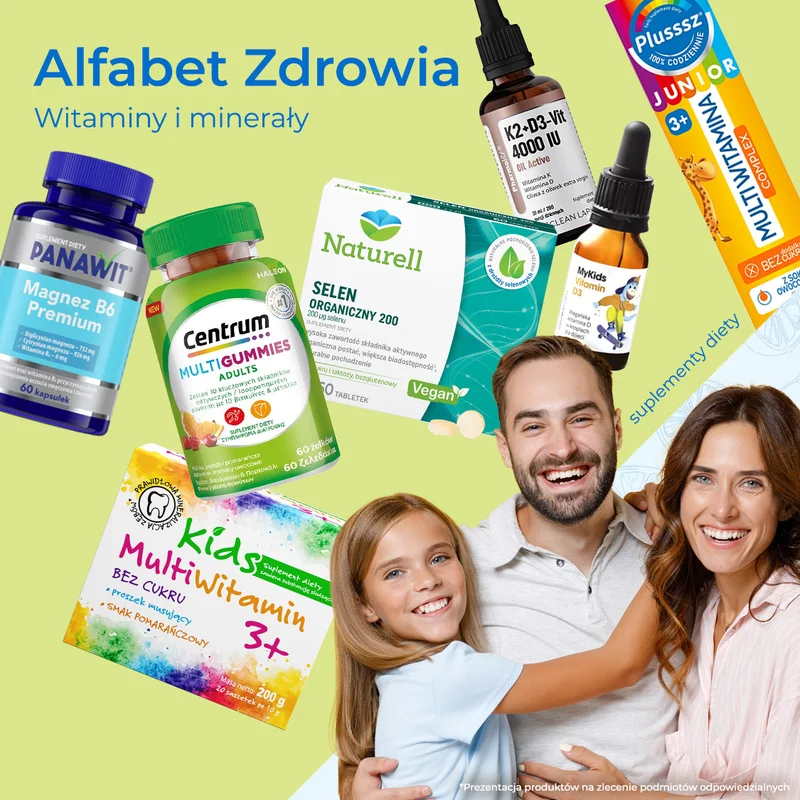 - suplementy diety – wspomagające odporność, pamięć, sen, serce i stawy,