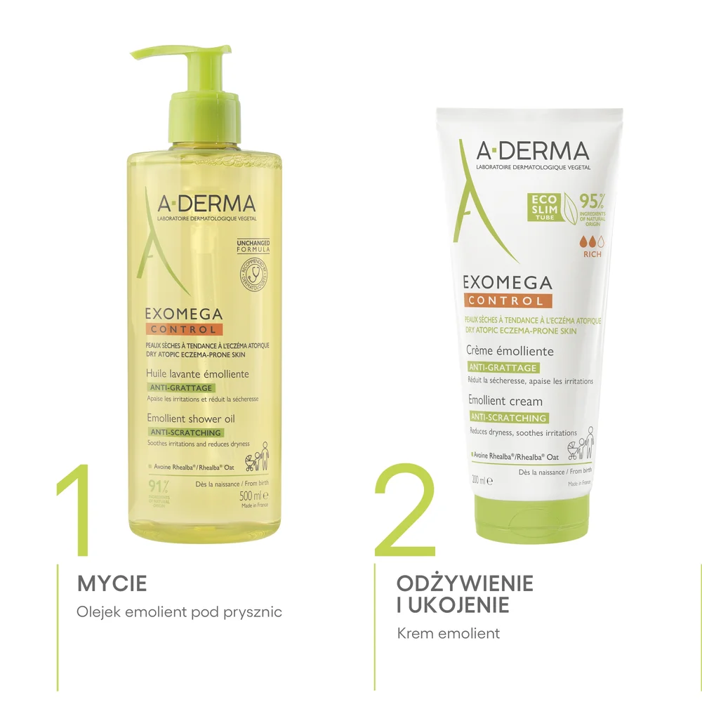 Sposób użycia A-Derma Exomega Control Krem emolient: należy nakładać raz dziennie po umyciu skóry produktem do oczyszczania z tej samej linii.Informacje o bezpieczeństwie