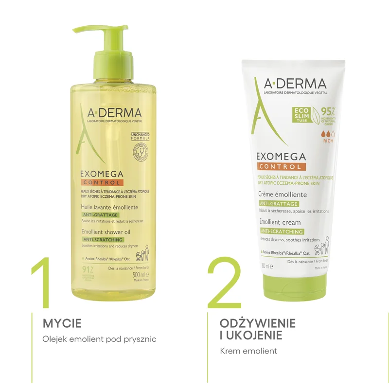 Exomega Control krem emolient łagodzi i chroni przed atopowym zapaleniem skóry niemowląt i dzieci.