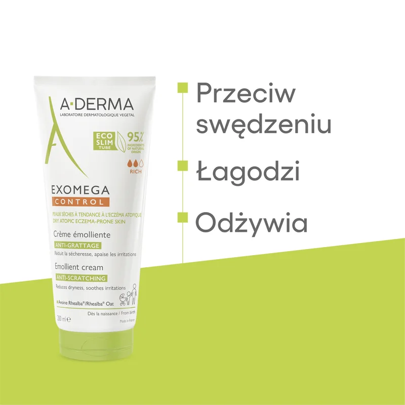 A-Derma Exomega Control Krem emolient przeciw drapaniu, skóra sucha, 200 ml