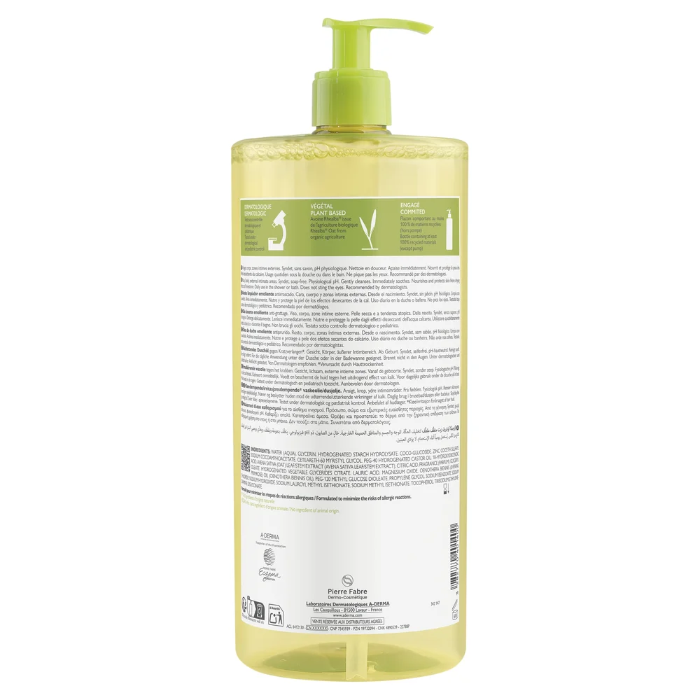 A-Derma Exomega Control, olejek zapobiegający drapaniu oczyszczający olejek emolientowy pod prysznic, 1000 ml