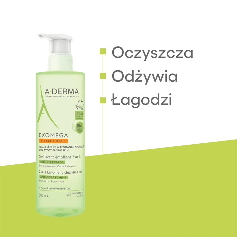 A-derma Exomega Control Żel Emolient 2w1 do mycia, dla skóry suchej i z atopowym zapaleniem skóry, 500 ml