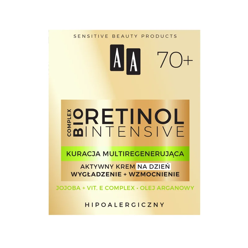 AA Retinol Intensive 70+ aktywny krem na dzień to produkt kosmetyczny, który wspiera wzmocnienie i ujędrnienie skóry. Formuła kremu została wzbogacona o składniki aktywne, które mają na celu poprawę elastyczności i jędrności skóry. Produkt jest dedykowany do pielęgnacji cery dojrzałej, aby wspierać jej naturalny proces regeneracji. Regularne stosowanie może przyczynić się do wygładzenia zmarszczek.Składniki/Ingredients