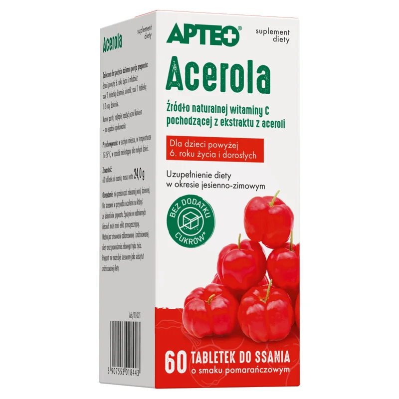 Apteo Acerola 60 tabletek do ssania o smaku pomarańczowym