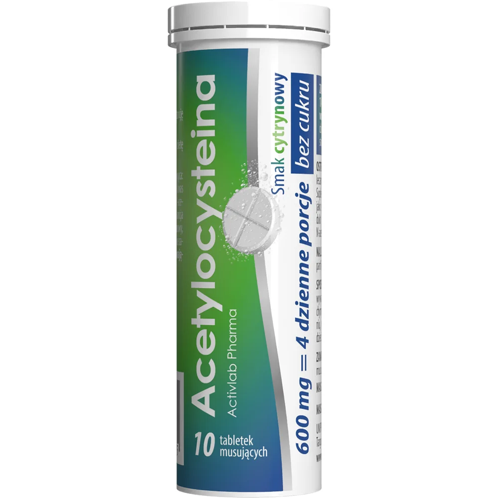 ActivLab Pharma, Acetylocysteina to suplement diety zawierający aminokwas (acetylocysteine). Produkt w formie tabletek musujących o smaku cytrynowy Suplement przeznaczony dla osób dorosłych.