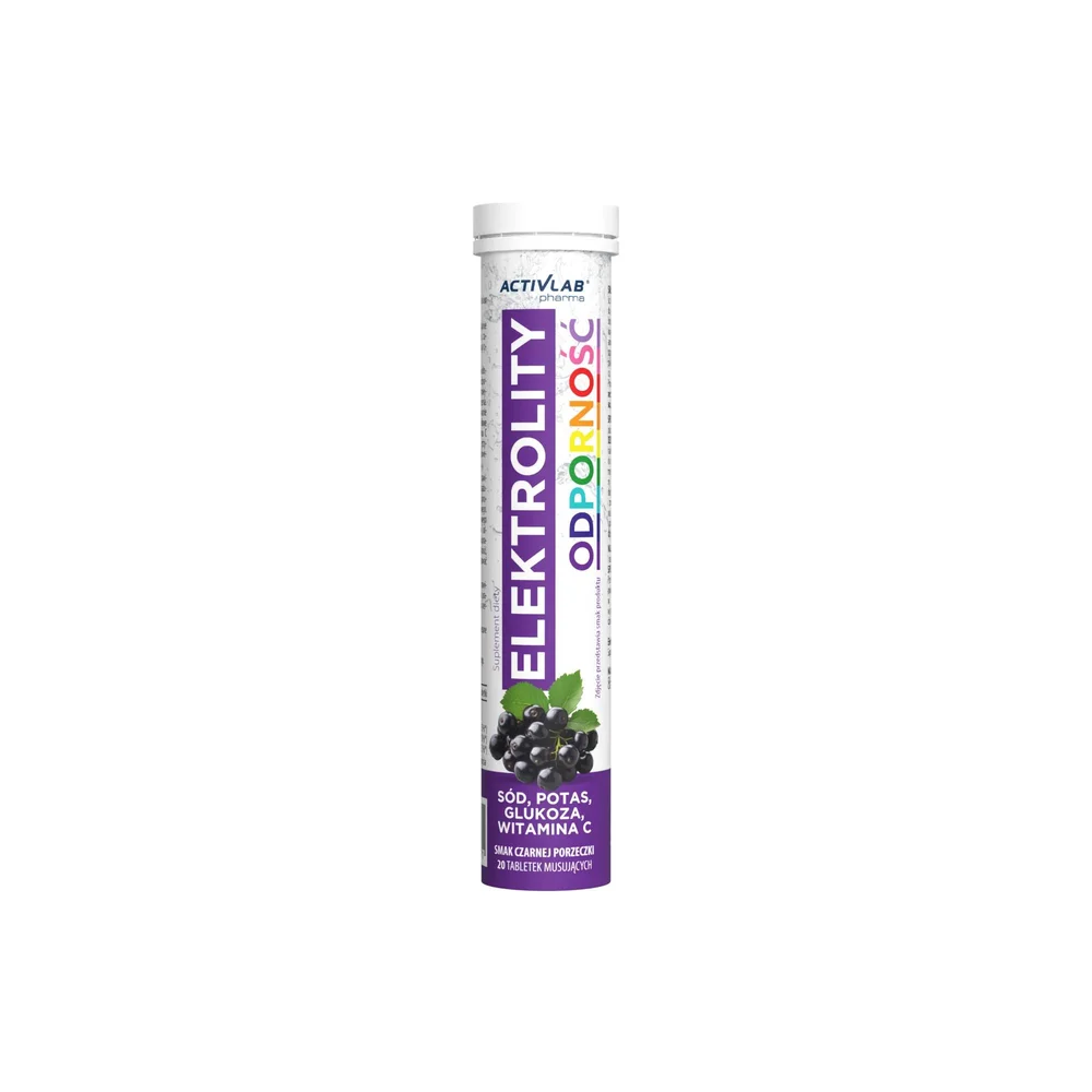 Activlab Pharma Elektrolity Odporność to suplement diety w postaci musujących tabletek o smaku czarnej porzeczki. Produkt opracowany dla osób dorosłych celem uzupełnienia diety w składniki preparatu.