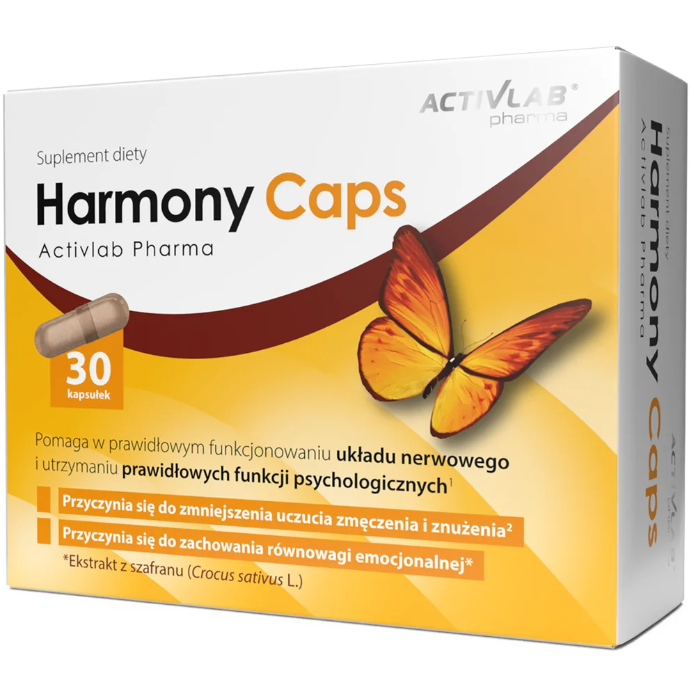 ActivLab Pharma, Harmony Caps to suplement diety, w skład którego wchodzą składniki wspierające utrzymanie równowagi emocjonalnej, a także pomagające redukować uczucie zmęczenia i znużenia. Produkt opracowany dla osób dorosłych.