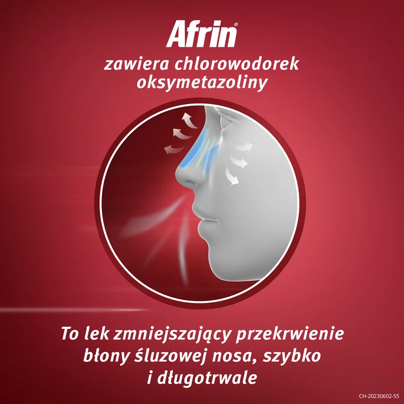 1ml zawiera 0,5mg oksymetazoliny chlorowodorku Substancje pomocnicze: disodu edetynian, disodu fosforan bezwodny, sodu diwodorofosforan jednowodny, powidon K29-32, benzalkoniowy chlorek, makrogol 1450, woda oczyszczona, alkohol benzylowy, celuloza mikrokrystaliczna i karmeloza sodowa, aromat cytrynowyDawkowanie