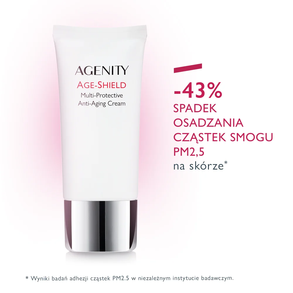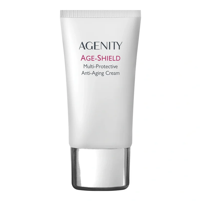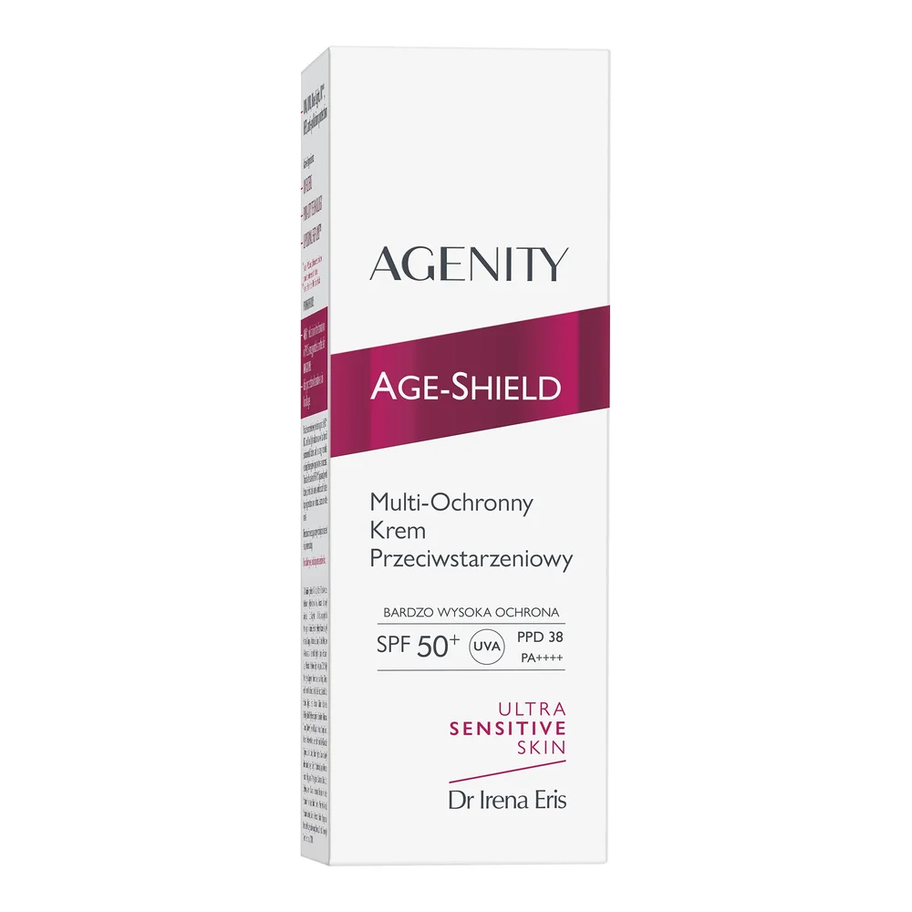 Agenity Age-Shield, Krem przeciwstarzeniowy multiochronny to kosmetyk, który chroni skórę przed szkodliwym działaniem promieniowania UV, podczerwonego i niebieskiego światła. Redukuje widoczność zmarszczek, przebarwień i zaczerwienień, wspomagając regenerację skóry. Lekka formuła nie pozostawia białego filmu, dzięki czemu może być stosowana pod makijaż.Stosowanie produktu
