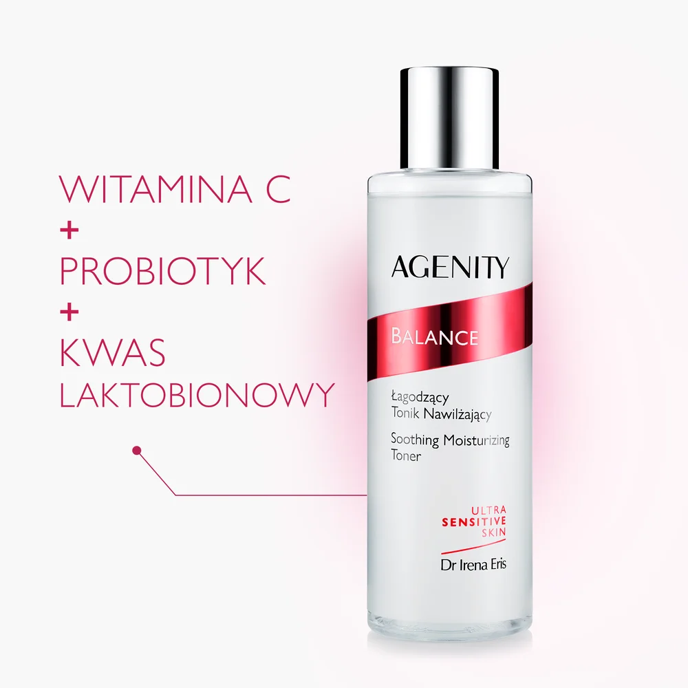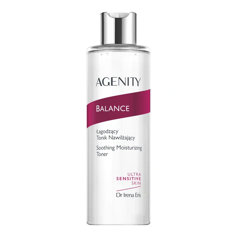 Agenity Balance, Tonik nawilżający łagodzący do każdego rodzaju skóry to produkt kosmetyczny stworzony z myślą o wszystkich typach skóry, w tym wrażliwej. Działa kojąco, nawilżająco i wzmacnia naturalną barierę ochronną skóry.Składniki/Ingredients