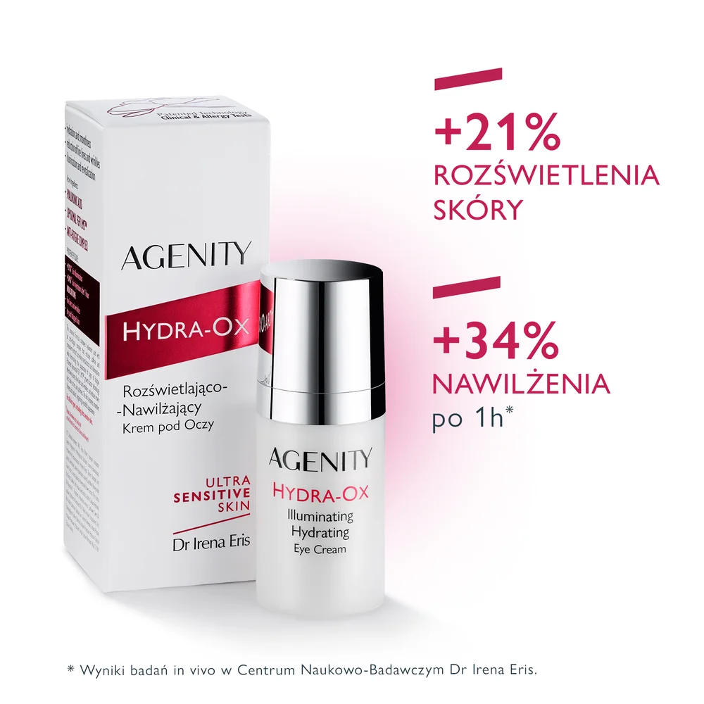 Agenity Hydra-Ox, Krem pod oczy rozświetlająco-nawilżający to produkt kosmetyczny przeznaczony do pielęgnacji skóry wokół oczu.Składniki/Ingredients