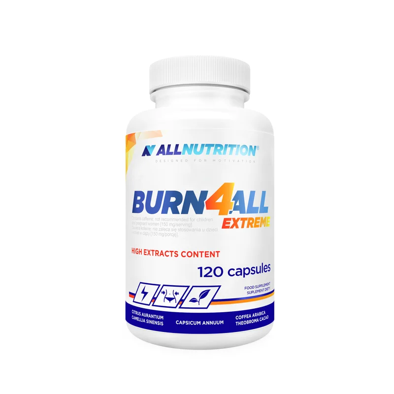 Allnutrition, Burn4All Extreme to suplement diety opracowany dla osób dorosłych, aktywnych fizycznie. Produkt w swoim składzie zawiera zawiera ekstrakty roślinne.