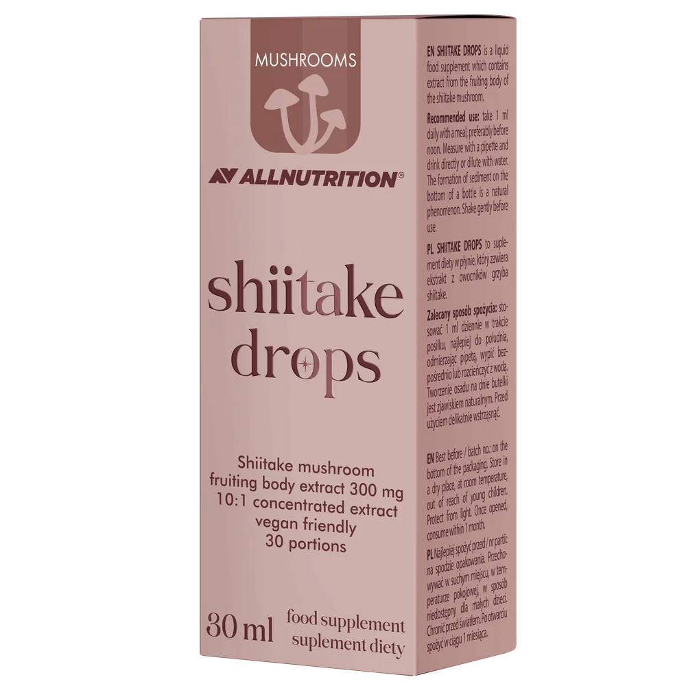 Allnutrition, Mushrooms Shiitake to suplement diety, zawierający ekstrakt z grzybów shiitake. Produkt przeznaczony dla osób dorosłych.
