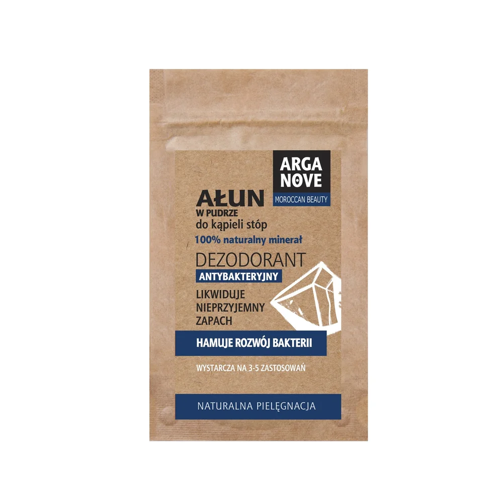 Arganove Ałun dezodorant antybakteryjny do kąpieli stóp w pudrze to kosmetyk do pielęgnacji i ochrony skóry. Zapobiega nieprzyjemnemu zapachowi potu.Stosowanie produktu
