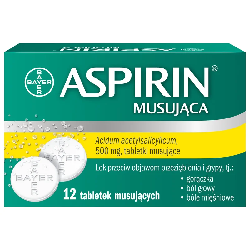 Aspirin Musująca 500 mg to tabletki musujące zalecane w migrenowych bólach głowy. Dodatkowo stosowane w bólach o małym lub umiarkowanym nasileniu i w przebiegu gorączki.