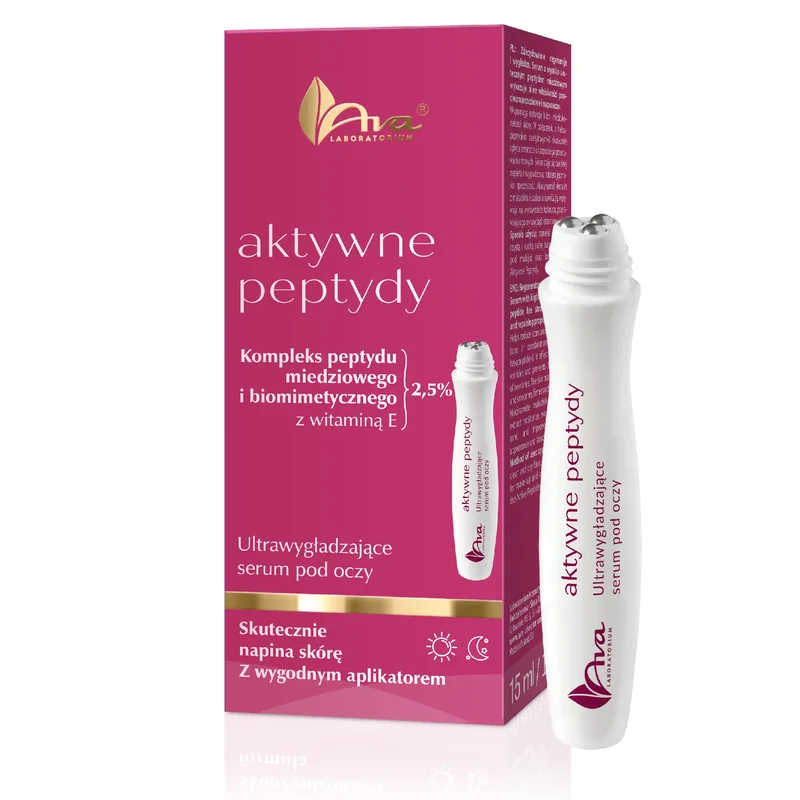 Ava, Aktywne Peptydy Ultrawygładzające, serum pod oczy roll on to produkt kosmetyczny zawierający składniki aktywne, które mają na celu wygładzenie i ujędrnienie delikatnej skóry wokół oczu. Produkt przeznaczony dla osób dorosłych.