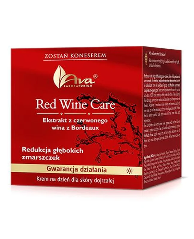 Ava, Red Wine Care, krem na dzień dla skóry dojrzałej to produkt kosmetyczny przeznaczony do pielęgnacji dojrzałej skóry twarzy. Stymuluje produkcję kolagenu i elastyny. Krem odpowiedni dla osób dorosłych.