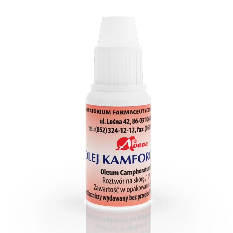 Olej kamforowy (Oleum camphoratum FP) to produkt leczniczy w postaci roztworu do stosowania na skórę o stężeniu 10%, dostępny w opakowaniu o pojemności 10 g. Zawiera kamforę oraz oczyszczony olej rzepakowy, które odpowiadają za jego charakterystyczne działanie. Produkt wykazuje właściwości wywołujące miejscowe przekrwienie skóry, co sprzyja uczuciu rozgrzania i może przynieść ulgę w dolegliwościach.