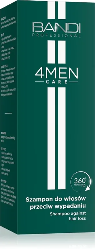 BANDI 4MEN Care Szampon do włosów przeciw wypadaniu to produkt kosmetyczny. Szampon łączy łagodne substancje myjące z kompleksowym działaniem przeciw nadmiernemu wypadaniu. Wspiera naturalne procesy odnowy skóry głowy, poprawia kondycję cebulek i pomaga zachować mocne, zdrowo wyglądające włosy. Systematyczne stosowanie sprzyja poprawie gęstości włosów oraz ich większej odporności na codzienne obciążenia.