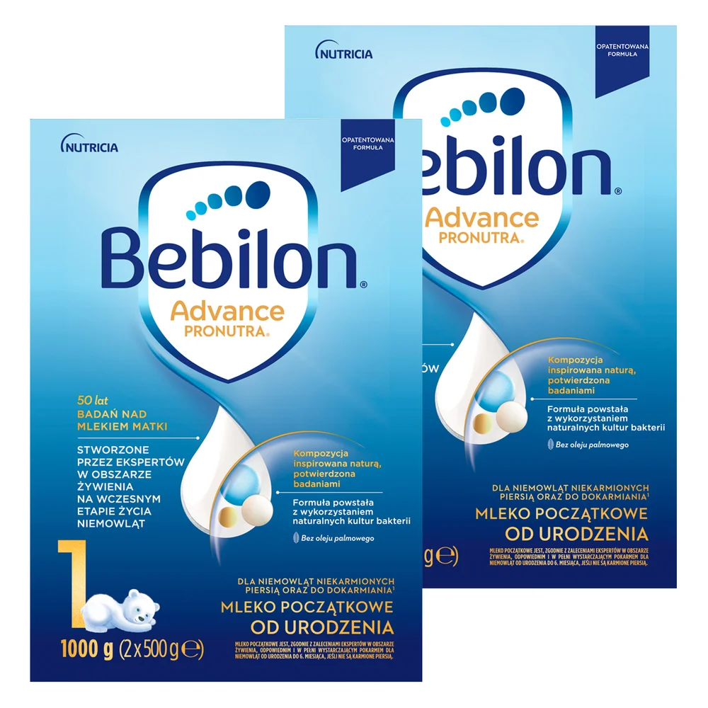 Bebilon 1 Pronutra-Advance mleko modyfikowane, początkowe przeznaczone do karmienia noworodków i niemowląt do ukończenia 6. miesiąca życia, które z jakiś powodów nie mogą być karmione piersią. Produkt może stanowić uzupełnienie karmienia naturalnego, jeśli zaistnieje konieczność dokarmiania. Zaleca się stosowanie produktu tylko po konsultacji z lekarzem.Właściwości produktu
