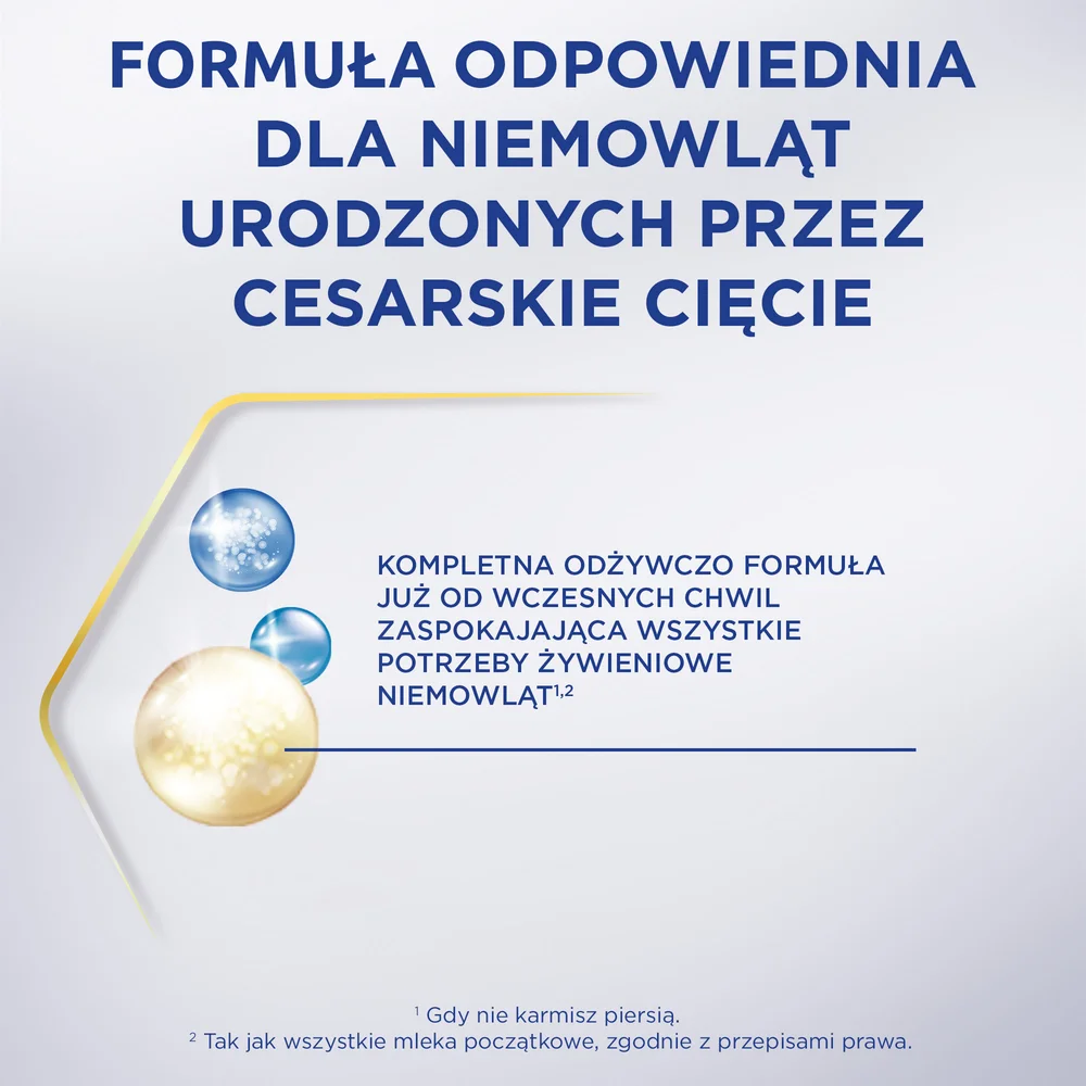 Jeśli dziecko nie jest karmione piersią, Bebilon Profutura CESARBIOTIK 1 może stanowić jedyny pokarm zaspokajający wszystkie potrzeby żywieniowe, do czasu wprowadzenia odpowiedniego żywienia uzupełniającego. Bebilon Profutura CESARBIOTIK 1 jest również odpowiedni jako uzupełnienie karmienia piersią, jeśli zaistnieje konieczność dokarmiania. Karmienie piersią jest najbardziej właściwym sposobem żywienia niemowląt. Karmienie piersią jest najbardziej właściwym sposobem żywienia niemowląt. Produkt jest odpowiedni dla niemowląt od urodzenia, jeśli nie są one karmione piersią. Produkt jest odpowiedni jako uzupełnienie karmienia piersią, jeśli zaistnieje konieczność dokarmiania. Zaleca się stosowanie produktu wyłącznie po konsultacji z lekarzem. Przechowywać w suchym i chłodnym miejscu niedostępnym dla dziecka.