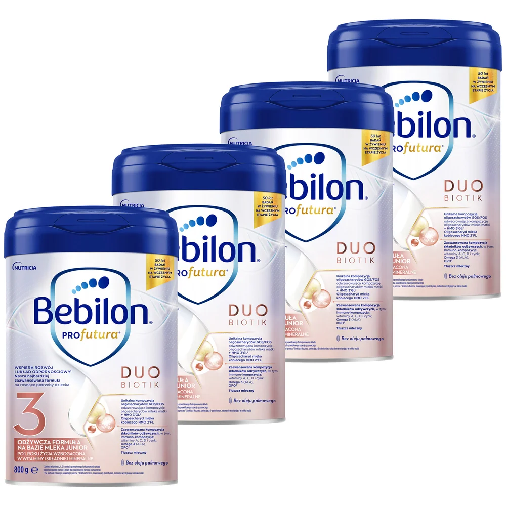Bebilon PROfutura DUOBIOTIK 3 to żywność specjalnego przeznaczenia medycznego dla niemowląt po 1. roku życia przeznaczona gdy karmienie piersią nie jest możliwe lub jako uzupełnienie karmienia piersią w sytuacjach wymagających dokarmiania.