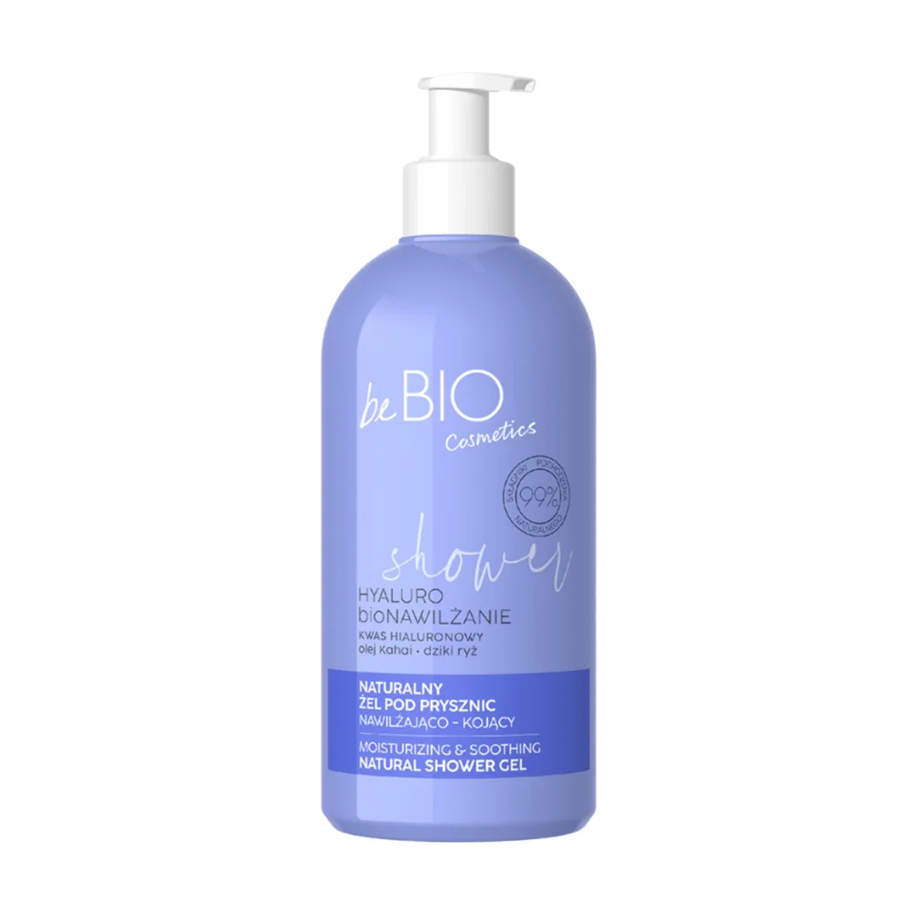 beBIO HYALURO BIOnawilżanie naturalny żel pod prysznic nawilżająco-kojący olej kahai + dziki ryż 350 ml