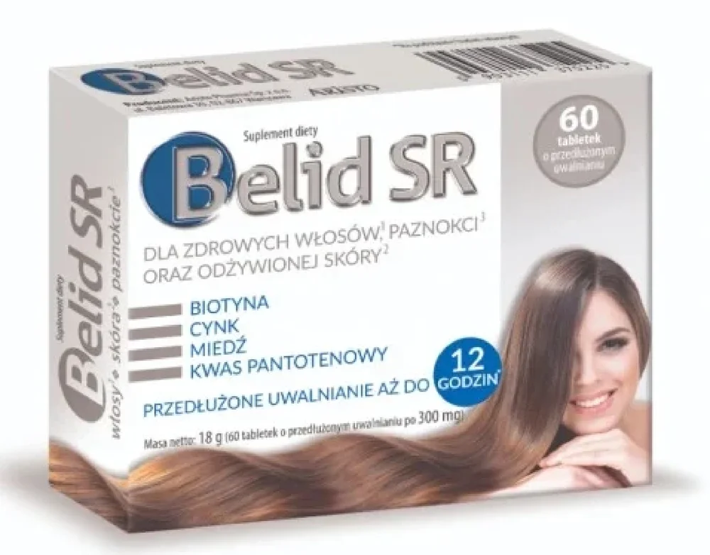 Belid SR, tabletki o przedłużonym uwalnianiu to suplement diety, którego składniki wspierają zdrowie włosów, skóry i paznokci. Formuła preparatu została opracowana tak, aby składniki odżywcze uwalniały się stopniowo, zapewniając długotrwałe wsparcie dla kondycji włosów, skóry i paznokci. Produkt dla osób dorosłych.