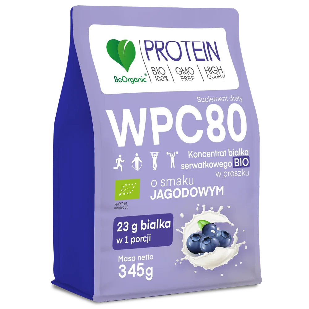 BeOrganic, Białko serwatkowe WPC 80 Jagoda BIO, proszek, 345 g