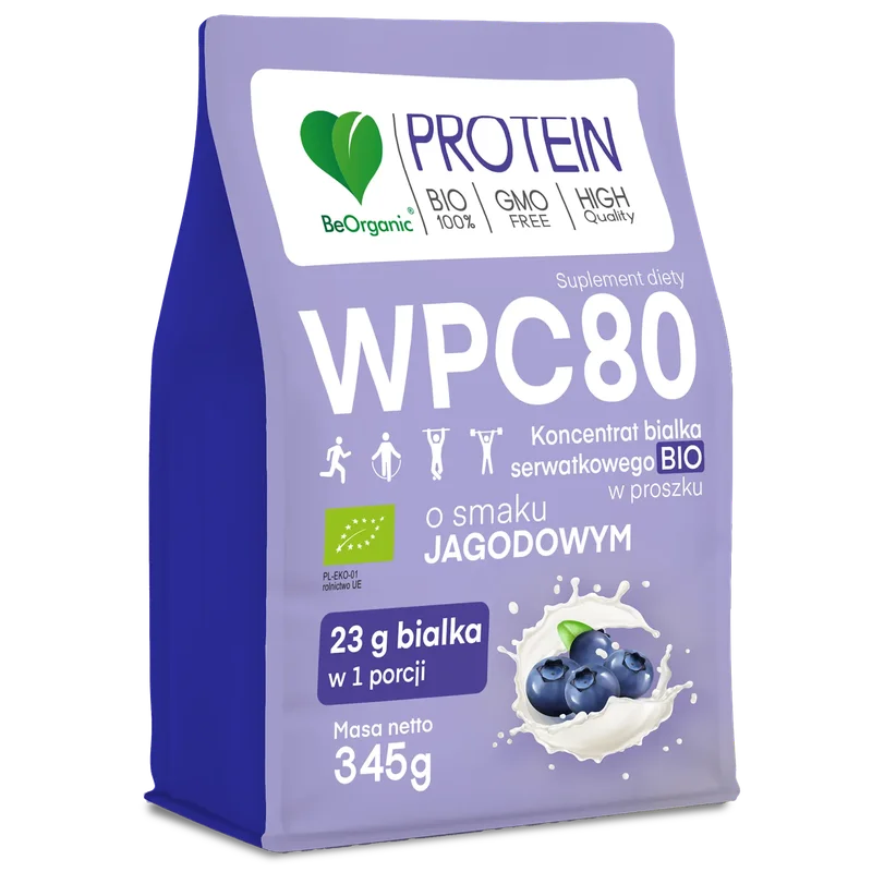 BeOrganic WPC 80 Jagoda BIO to suplement diety w postaci pełnowartościowego białka serwatkowego w proszku, pozyskiwanego z ekologicznego mleka pochodzącego z gospodarstw, w których zwierzęta hodowane są w naturalnych warunkach i żywione zgodnie z zasadami ekologii. Produkt nie zawiera zbędnych dodatków i jest odpowiedni dla dorosłych, którzy prowadzą aktywny tryb życia lub chcą wzbogacić codzienną dietę w białko.