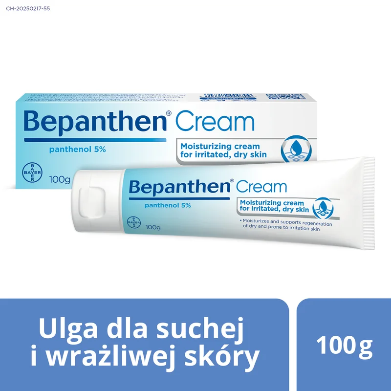 Aqua, Panthenol 5% (Provitamina B5), Isopropyl myristate, Cetyl alcohol, Stearyl alcohol, Propylene glycol, Lanolin, Potassium cetyl phosphate, Phenoxyethanol, Pantolactone, Potassium hydroxide, BHT.Informacje o bezpieczeństwie