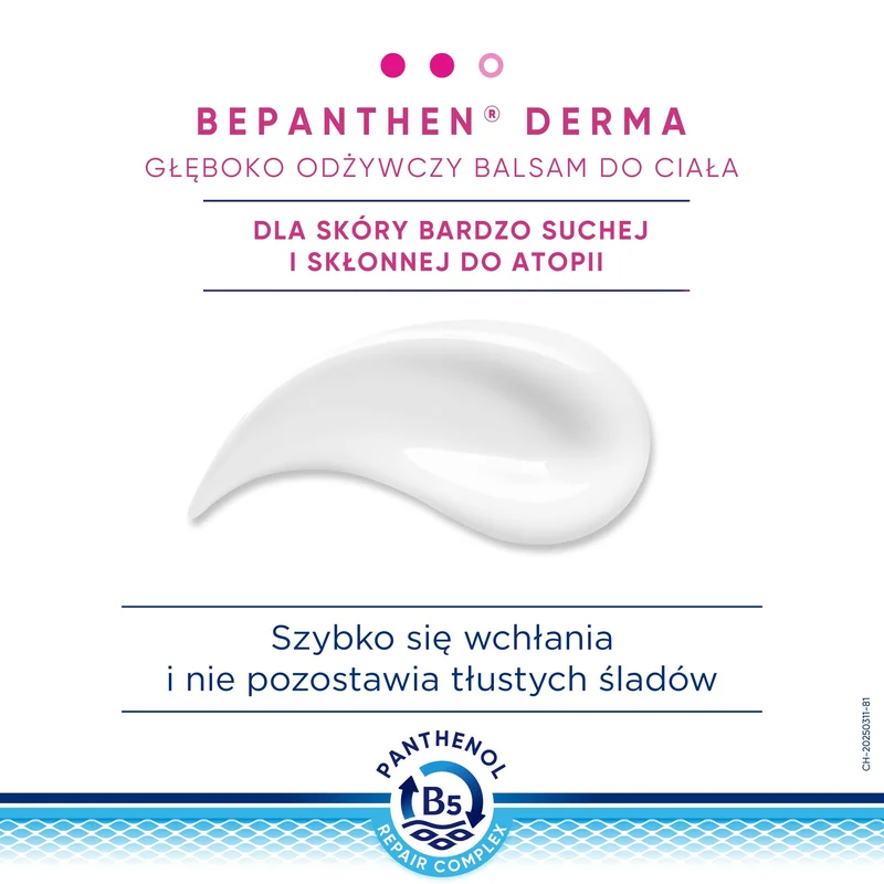 Bepanthen Derma, głęboko odżywczy balsam do ciała, to kosmetyk przeznaczony do codziennej pielęgnacji skóry bardzo suchej i wrażliwej.