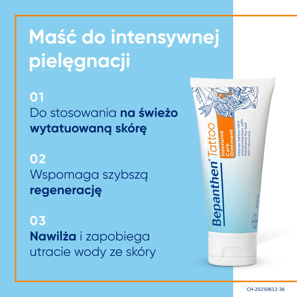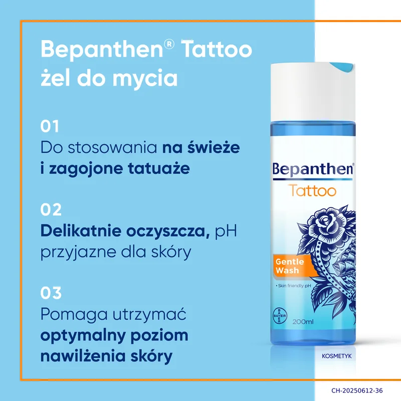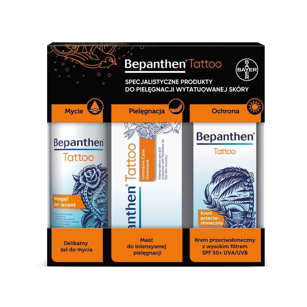Bepanthen Tattoo Delikatny żel do mycia, 200 ml + Maść do intensywnej pielęgnacji, 50 g+ Krem przeciwsłoneczny SPF50+, 50 g