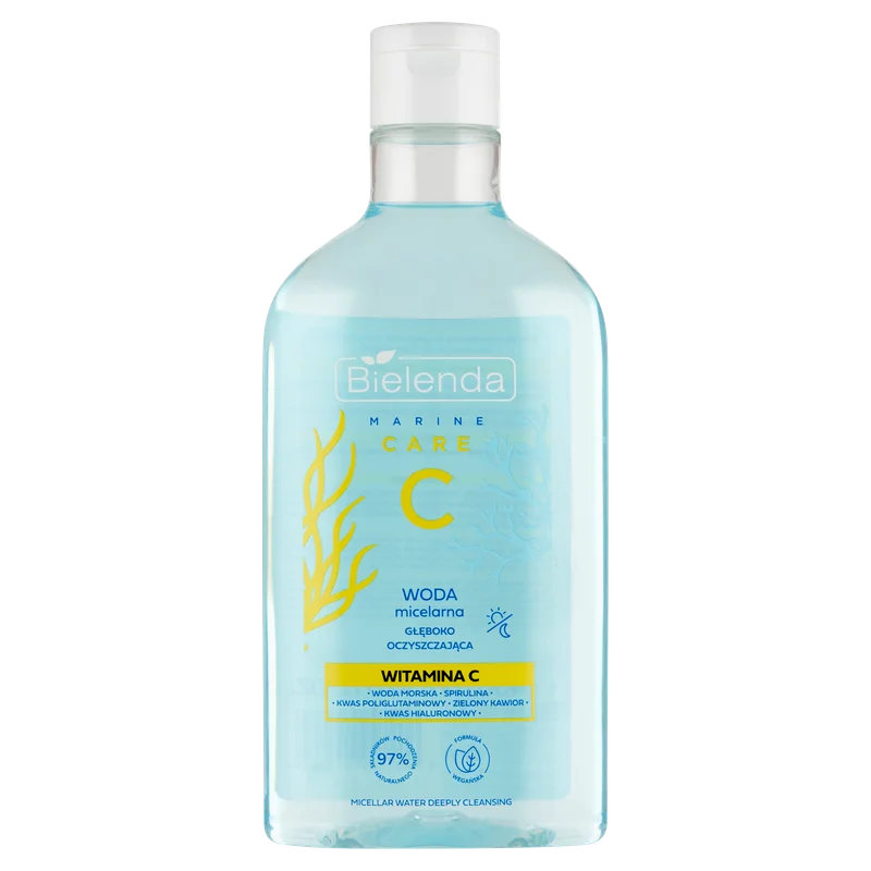 Bielenda C Marine Care, woda micelarna, głęboko oczyszczająca to produkt kosmetyczny do demakijażu i oczyszczania skóry. Zawiera składniki nawilżające oraz działające na skórę. Efektywnie usuwa makijaż oraz zanieczyszczenia, pozostawiając skórę świeżą i czystą. Produkt przeznaczony jest do każdego typu cery. Bez potrzeby spłukiwania, jest wygodny w użyciu i zapewnia uczucie komfortu po aplikacji.Składniki/Ingredients