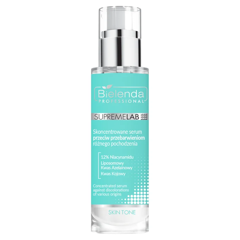 Bielenda, Is Supremelab Skin Tone to produkt kosmetyczny, skoncentrowane serum przeciw przebarwieniom różnego pochodzenia. Formuła serum została opracowana w celu redukcji widoczności przebarwień, ujednolicenia kolorytu skóry oraz poprawy jej wyglądu. Serum ma działanie rozjaśniające i wspiera naturalną regenerację skóry, co przyczynia się do jej lepszego wyglądu. Produkt przeznaczony jest do stosowania na skórę z nierównym kolorytem oraz skłonną do przebarwień.Składniki/Ingredients