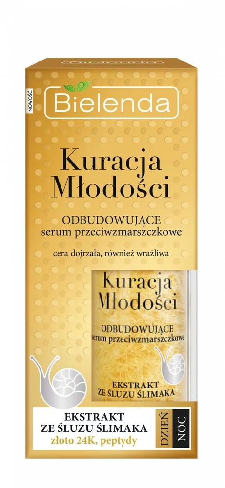 Bielenda Kuracja Młodości odbudowujące serum przeciwzmarszczkowe o wyjątkowej formule przeciwstarzeniowej. Serum intensywnie nawilża, wspomaga odbudowuję i regenerację skóry, poprawia jej koloryt. Wygładza zmarszczki, redukuje powstawanie nowych. Kosmetyk idealnie znajdzie zastosowanie w codziennej pielęgnacji skóry dojrzałej.