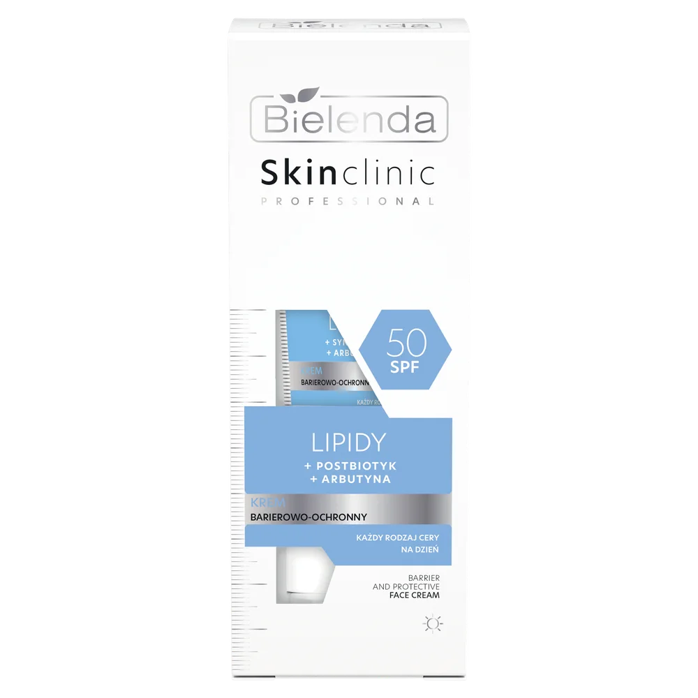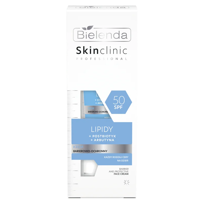 Bielenda Skin Clinic Professional Lipidy to produkt kosmetyczny, który pełni funkcję kremu barierowo-ochronnego z SPF 50. Oferuje ochronę przed promieniowaniem UV oraz wspomaga nawilżenie i regenerację skóry. Przeznaczony jest do codziennego stosowania, odżywia skórę, wzmacnia jej naturalną barierę ochronną oraz chroni przed szkodliwymi czynnikami zewnętrznymi.Składniki/Ingredients