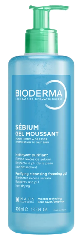 Bioderma Sebium Gel Moussant, antybakteryjny żel do mycia twarzy, skóra tłusta i mieszana, 400 ml