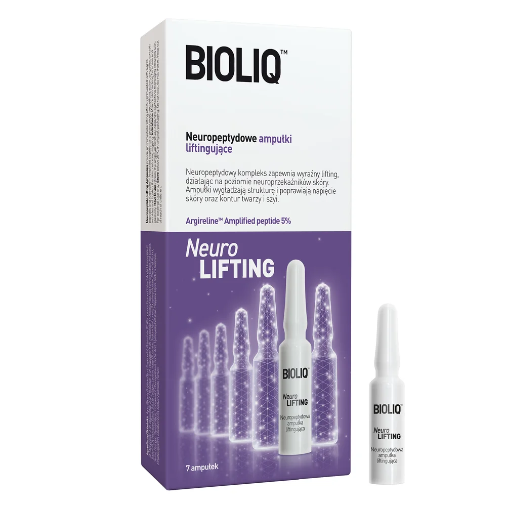 Bioliq, Neuropeptydowe ampułki liftingujące to produkt kosmetyczny, który ma na celu wygładzenie i ujędrnienie skóry. Formuła zawiera neuropeptydy, które działają na napięcie skóry, zmniejszając widoczność zmarszczek. Produkt rekomendowany dla osób dorosłych.