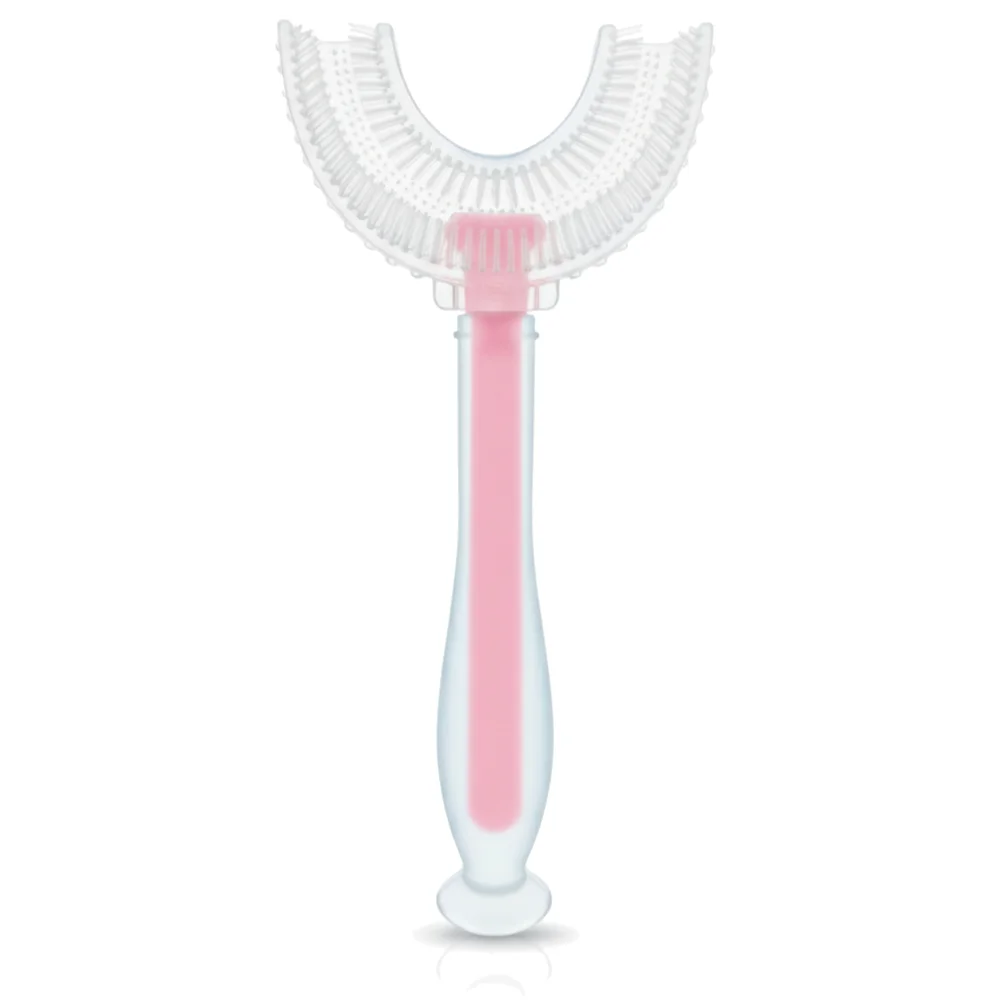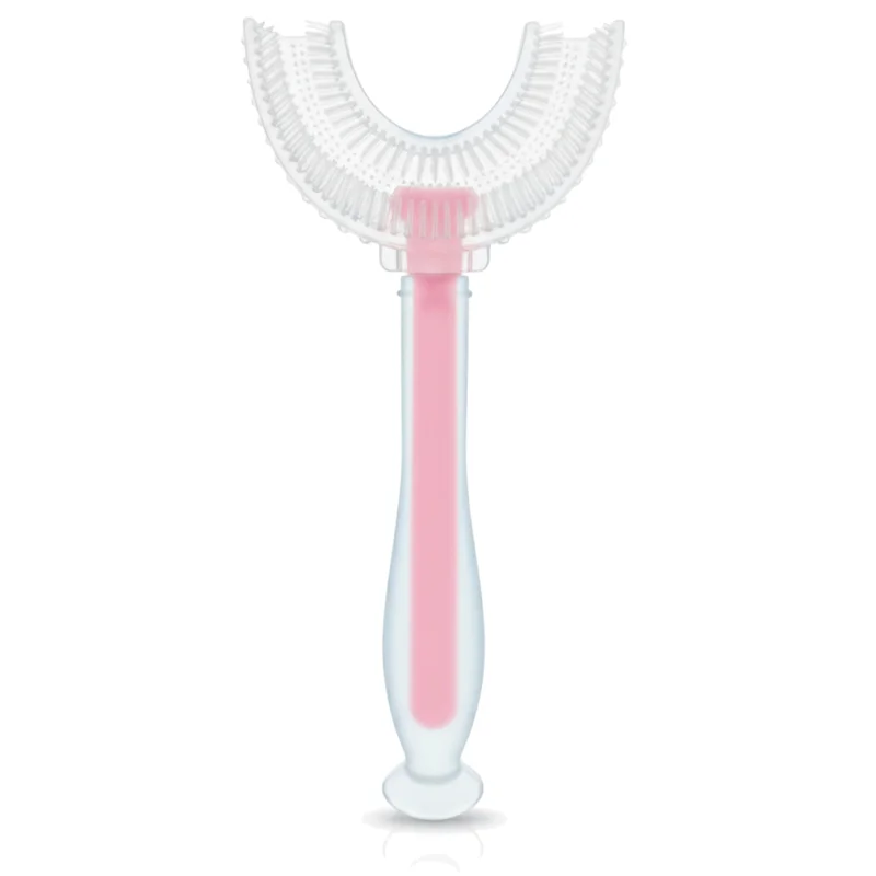Bocioland, silikonowa szczoteczka do zębów w kształcie U różowa, 1 sztuka