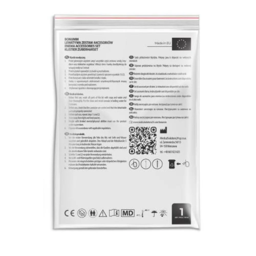 Bonumm Lewatywa zestaw uzupełniający to wyrób medyczny, który służy do przeprowadzania oczyszczających zabiegów. Produkt jest przeznaczony do stosowania w leczeniu zaparć oraz w przygotowaniu do badań diagnostycznych. Produkt przeznaczony jest do użytku jednorazowego.