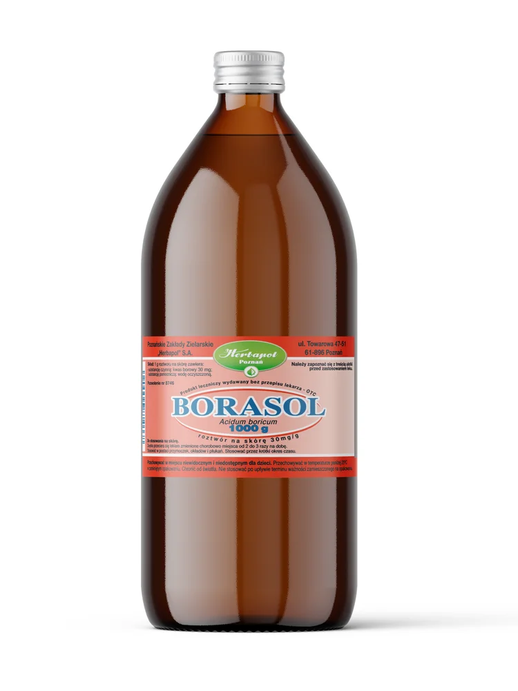 Ten lek należy zawsze stosować dokładnie tak, jak to opisano w ulotce dla pacjenta, lub według zaleceń lekarza lub farmaceuty. W razie wątpliwości należy zwrócić się do lekarza lub farmaceuty. Lek jest przeznaczony do stosowania miejscowego na skórę. Jeśli lekarz nie zaleci inaczej, zwykle przeciera się lekiem zmienione chorobowo miejsca od 2 do 3 razy na dobę. Stosować w postaci przymoczek, okładów i płukań. Stosować przez krótki okres czasu. W przypadku wrażenia, że działanie leku Borasol jest za mocne lub za słabe, należy zwrócić się do lekarza.Wskazania