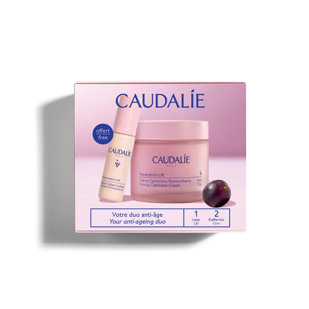 Zestaw Caudalie Resveratrol-Lift zawiera krem ujędrniający 50 ml i serum ujędrniające 30 ml, które wspólnie poprawiają jędrność i elastyczność skóry dojrzałej, redukują widoczność zmarszczek i linii mimicznych oraz wspierają codzienną pielęgnację anti-aging.