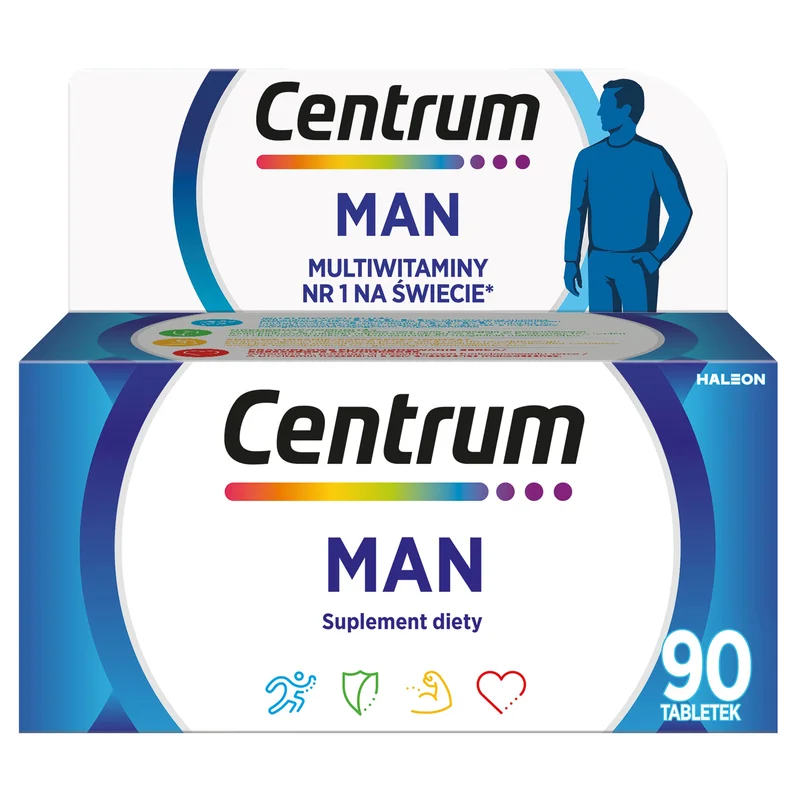 Centrum MAN to suplement diety zawierajacy kompleks witamin i minerałów. Produkt przeznaczony dla dorosłych mężczyzn.