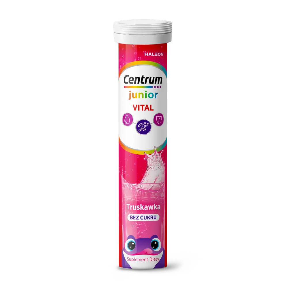 Centrum Vital Junior dla dzieci 4+, smak truskawkowy, bez cukru, tabletki musujące, 20 sztuk
