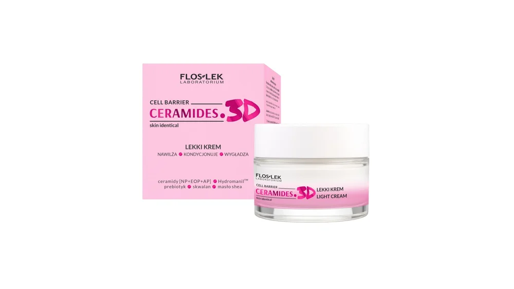 Floslek Ceramides. 3D Lekki krem nawilża, kondycjonuje i wygładza to produkt kosmetyczny przeznaczony do codziennej pielęgnacji skóry twarzy wymagającej nawilżenia, ukojenia i poprawy elastyczności.